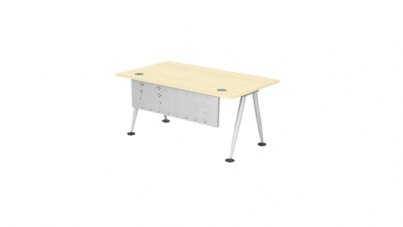 Bàn làm việc chân sắt ống tròn được tóp 01 đầu sơn tĩnh điện màu ghi, mặt bàn làm bằng gỗ công nghiệp melamine, bàn có yếm tôn đột lỗ trang trí. Kích thước của bàn như sau: