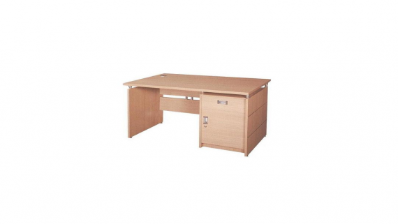 Bàn làm việc làm bằng gỗ công nghiệp melamine, yếm bàn chia 02 tấm được liên kết với nhau bằng các trụ inox tạo điểm nhấn cho bàn, bàn có hộc liền chân bàn. Bàn làm việc có những kích thước sau: