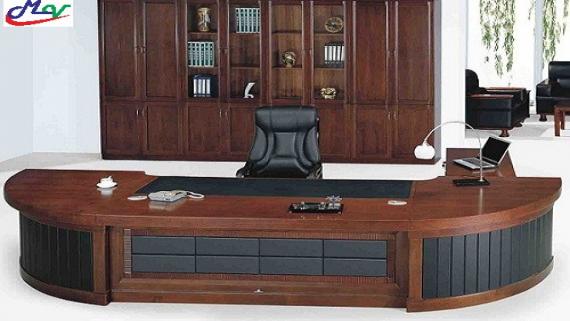 Bàn làm việc lãnh đạo nhập khẩu làm bằng gỗ verneer được sơn phủ PU 05 lớp màu cánh gián. Kích thước: W3200xD1150xH760mm. Mặt bàn dày 80mm, trên mặt bàn có miếng da trang trí, Yếm bàn có miếng sơn màu đen trang trí.
