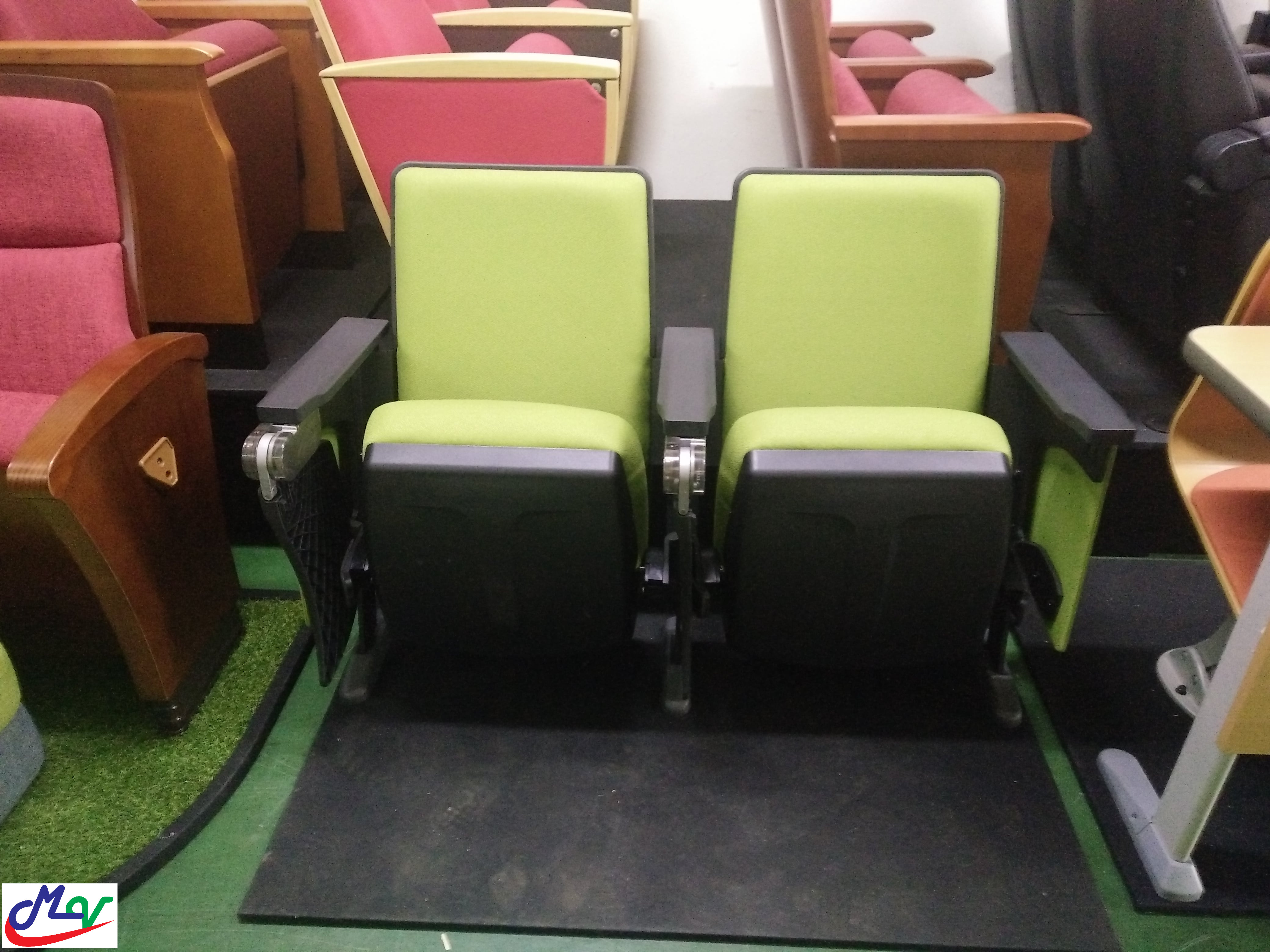 Ghế hội trường nhập khẩu Hàn Quốc. Ghế được nhập khẩu 100% tại Hàn Quốc có nguồn gốc xuất sứ rõ ràng cho từng lô hàng nhập khẩu. Ghế được làm bằng khung sắt sơn tĩnh điện công nghệ cao cấp của Hàn quốc, đệm, tựa bằng mút đúc, ốp tựa và ốp đệm có thể làm bằng gỗ verneer hoặc bằng nhựa cao cấp.