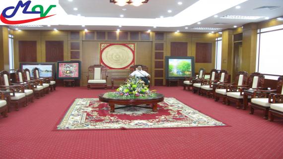 Ghế phòng khánh tiết làm bằng gỗ Gụ được sơn phủ Pu 03 lớp màu tùy chọn, Đệm bọc nỉ  trông sang trọng