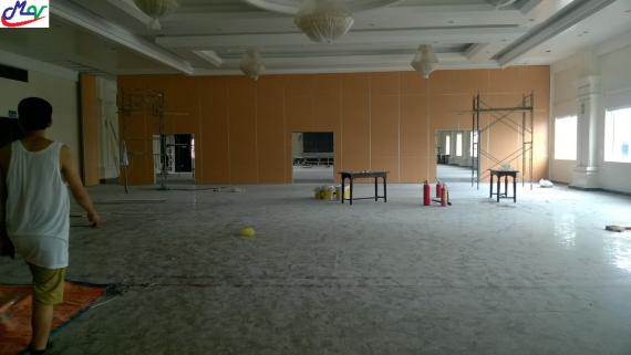 Vách ngăn di động hệ 65mm tức dộ dày vách dày 65mm. Được làm bằng khung nhôm đúc định hình bên trong được làm bằng sắt hộp mạ kẽm sơn chống gỉ, có bông thủy tinh cách âm, có hệ thống đạp vách có tác dụng cho vách được đứng vững như bức tường xây, bên ngoài vách được ốp gỗ MFC, verneer hoặc bọc nỉ. Vách chuyển động rất nhẹ nhàng êm ái nhờ có hệ thống ray bánh xe 02 tầng đặc chủng. Hệ thống vách sẽ được cất gọn vào một chỗ để thành 01 phòng rộng lớn hơn.