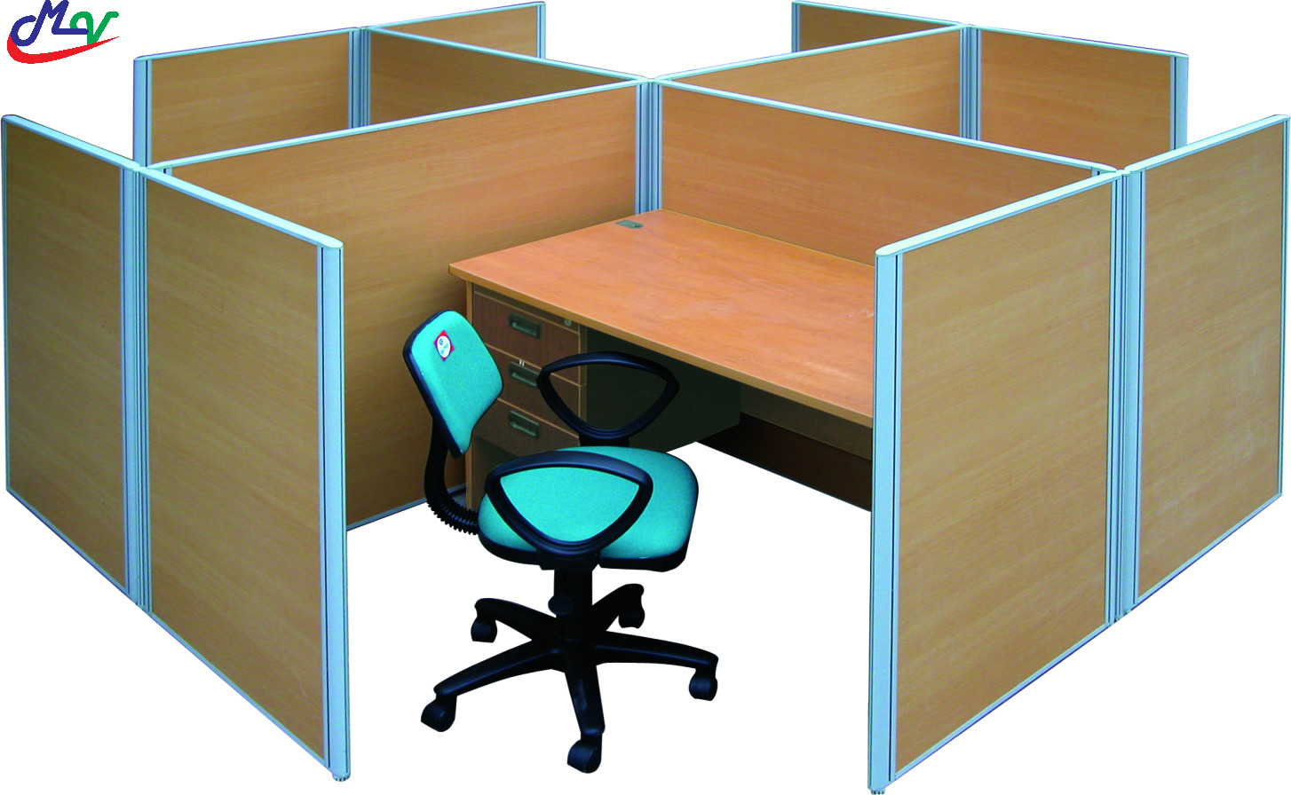 Vách ngăn khung nhôm bọc gỗ, được làm bằng khung nhôm định hình chuyên dụng bọc gỗ MDF phủ melamine, có thể làm vách kết hợp với kính, chiều cao của kính thường cao 250mm hoặc 300mm kính dày 5ly. Vách có chân tăng chỉnh độ cao, có hộp kỹ thuật để đi dây điện thoai, dây mạng, dây điện rất tiện ích và gọn gàng. Vách có loại dày 58mm, loại 38mm.