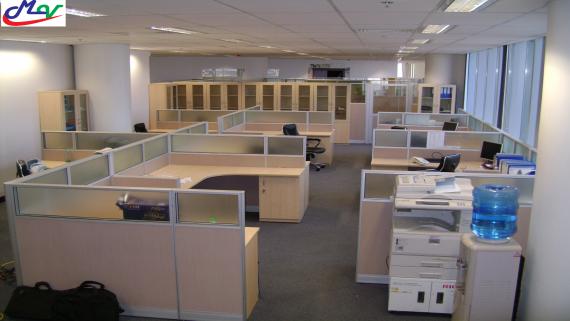 Vách ngăn khung nhôm bọc gỗ, được làm bằng khung nhôm định hình chuyên dụng bọc gỗ MDF phủ melamine, có thể làm vách kết hợp với kính, chiều cao của kính thường cao 250mm hoặc 300mm kính dày 5ly. Vách có chân tăng chỉnh độ cao, có hộp kỹ thuật để đi dây điện thoai, dây mạng, dây điện rất tiện ích và gọn gàng. Vách có độ dày loại 58mm và dày 38mm