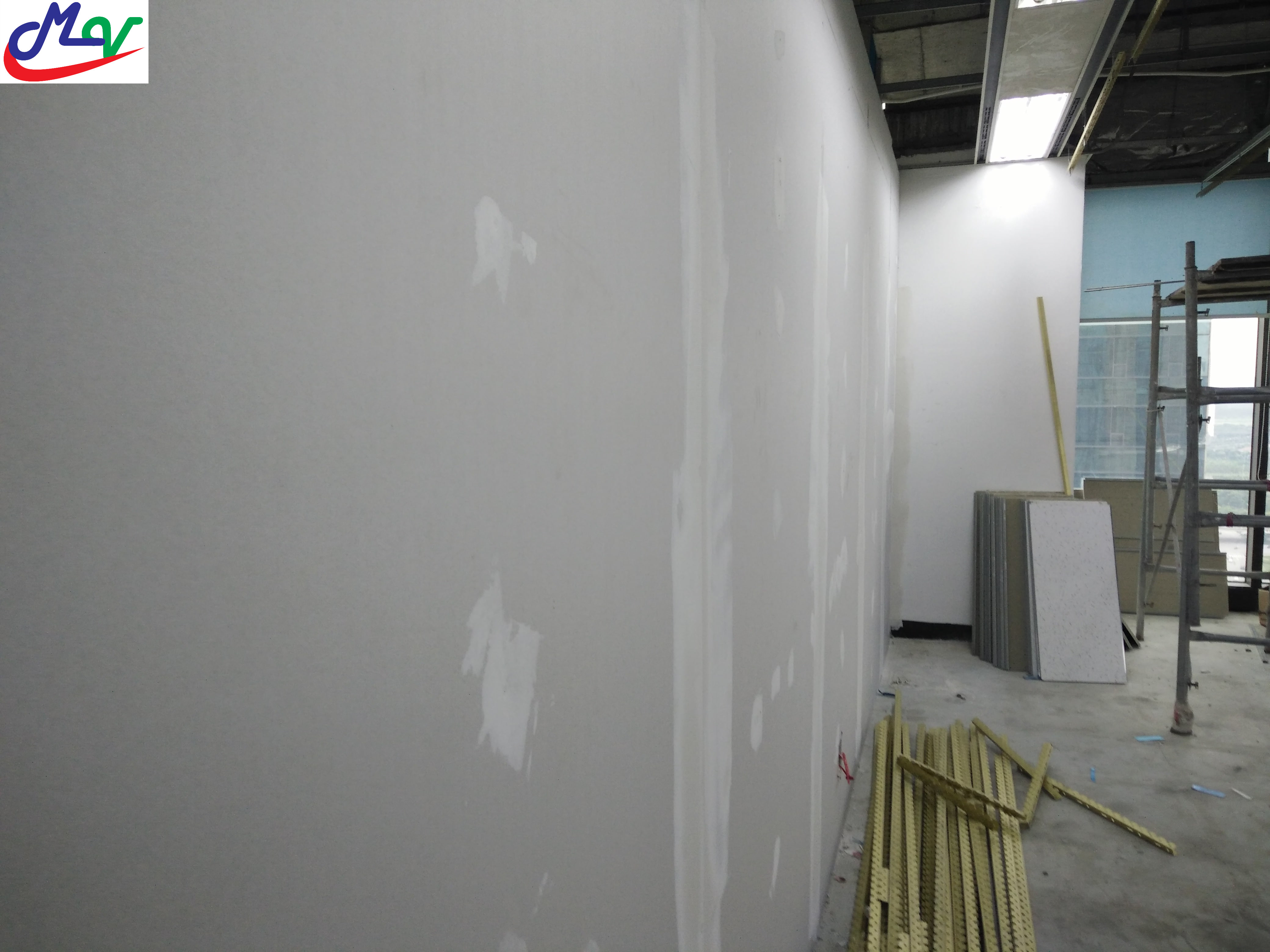 Vách thạch cao 02 mặt được làm bằng khung xương Vĩnh Tường, Zinca, Hà Nội hệ 52,hệ 64, hệ 76, hệ 92, hệ 100, tấm vách ốp ngoài cùng thì ta có thể dùng tấm Gyprooc, Tấm Boral, tấm Indo, hoặc tấm Knawf, khách hàng cũng có thể chọn tấm thạch cao chịu nước để dùng cho vách thạch cao. Để tăng phân cách âm thì khách hàng có thể cho thêm bông sợi khoáng, cao su non, và tấm xốp vào bên trong vách để cánh âm tốt hơn. Sau khi bắn tấm hoàn thiện bề mặt, thợ thạch cao sẽ dùng màng co chuyên dụng để vá những vết nối tấm vá chắm vá lỗ đinh bắn tấm. Sau đó bả matit bề mặt và sơn lót và sơn màu sau cùng. Màu sơn thì khác hàng có thể lựa chọn hãng sơn như Dulux, Maxilite, Jotun vv..